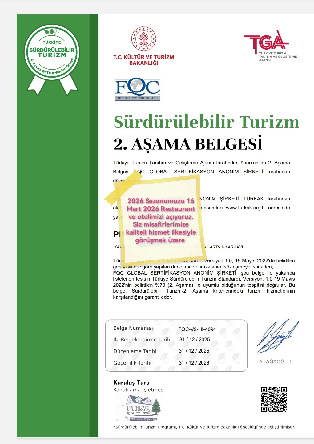 Tesis Türü: Turizm Yatırım Belgeli Konaklama Tesisleri
