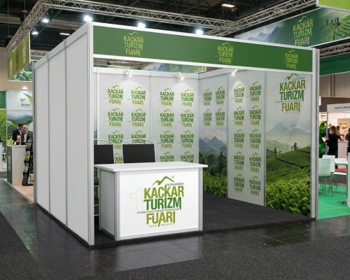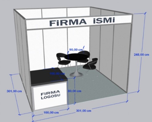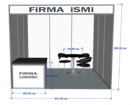 * Görsel üzerinde göreceğiniz yan kenarlar ve arka duvar cephe baskısı yapmak isteyen işletmeler bu ölçülerde baskı yapabilirler. İşletmelerin kendilerine ait bir tasarruftur. Alınlık ve Banko önü baskı Fuar ekibine aittir.
